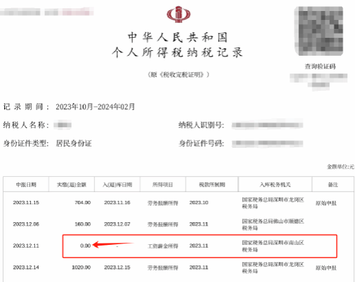 图示:有效的个人所得税证明
