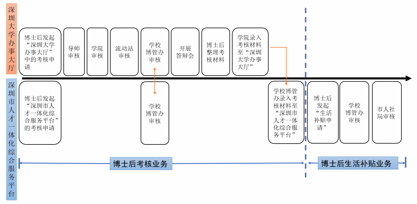 博士后考核主要涉及校内智慧校园系统和深圳市人社部门系统,要求2个系统的业务须同步进行申请,请按照以下时间节点操作。